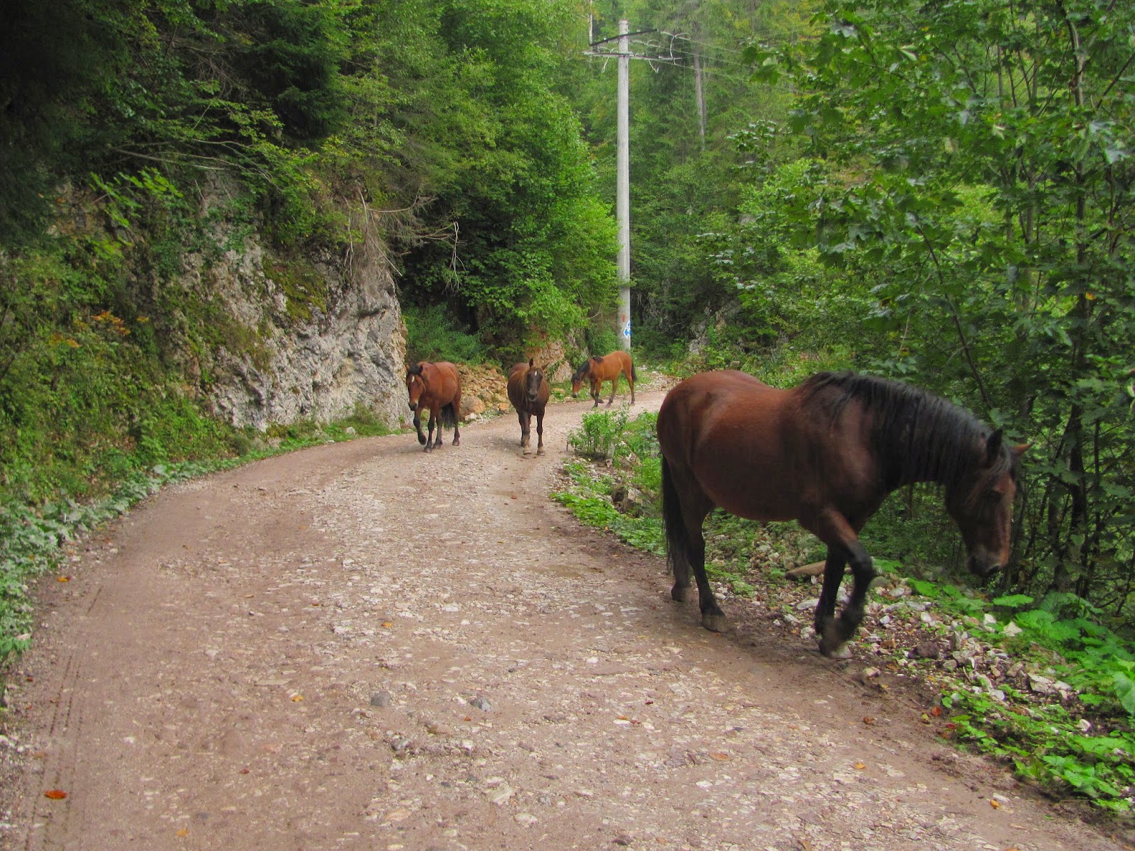 A fost singura zi când am prins puțină ploaie, dar nu aș numi-o ploaie. A fost o mocănească de o oră. Am pus pelerina de ploaie și am mers înainte, întâlnind și niște cai care veneau de la pășunat. Au grăbit pasul când m-au văzut.